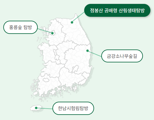 | 탐방로 | 홍릉숲, 점보산 곰배령, 금강소나무숲길, 한남시험림 | 4개소 |